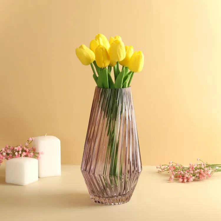 Эта прозрачная ваза прекрасно гармонирует с интерьером любого дома или офиса, подчеркивая изысканность пространства. Будучи устойчивой, она идеально подходит для размещения на столе, комоде или подоконнике, становясь ярким акцентом для любых композиций — от деликатных цветочных ансамблей до экспериментального декора.
