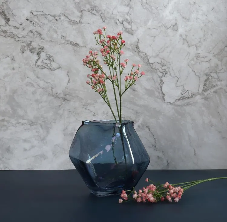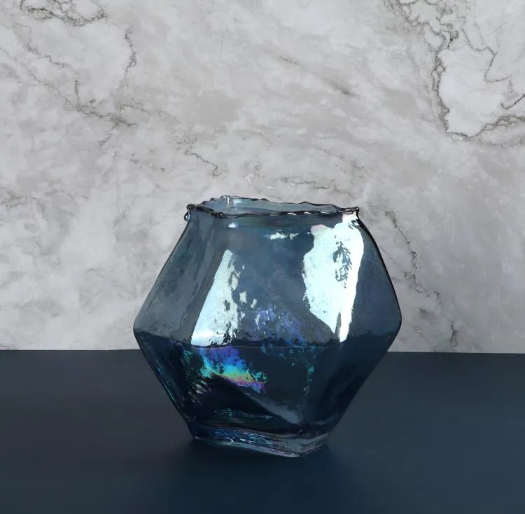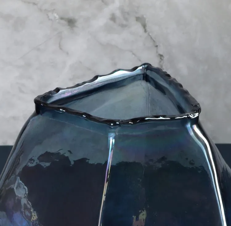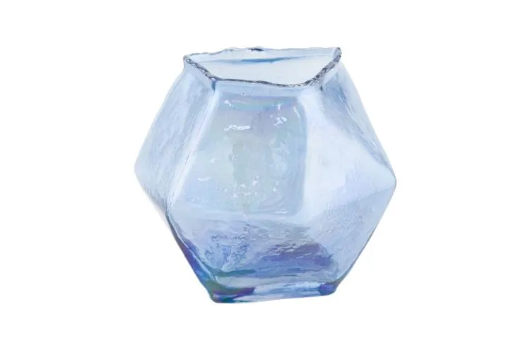 Воплощение роскоши и изысканности — шикарная стеклянная ваза, непременно станет центром внимания в любом пространстве. Её гранёная форма, словно бриллиант, играет на свету, создавая ослепительное сияние и подчеркивая тонкий перламутровый перелив голубого оттенка.