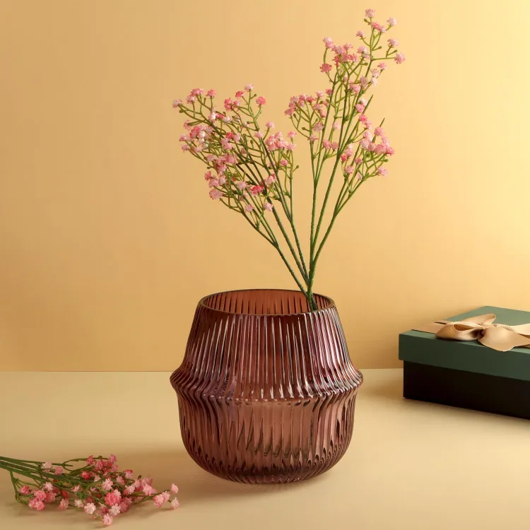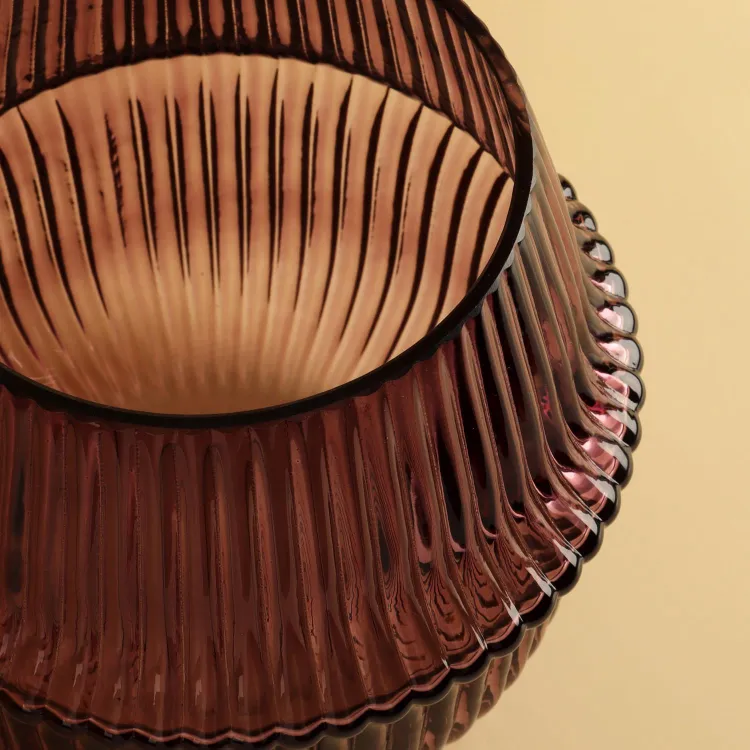 Игра света на бордовых стенках создает восточную атмосферу, добавляя глубину и потаенность в композицию вашего пространства. В качестве подарка такая стеклянная ваза будет символизировать изысканность и оригинальность вашего выбора, оставляя незабываемые впечатления.