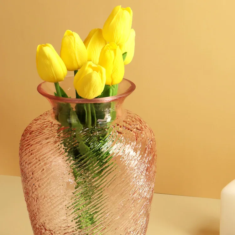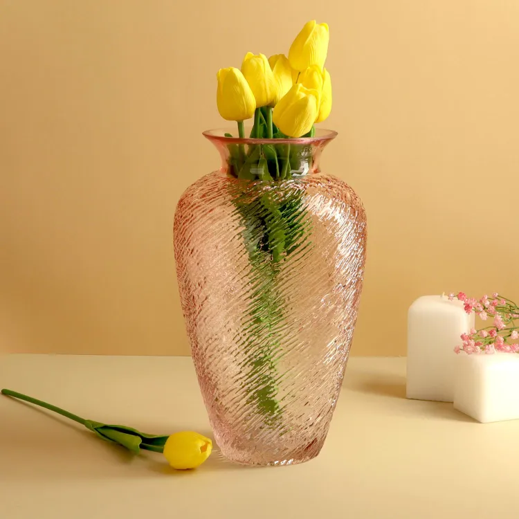 Изысканность бордового цвета и рельефность стекла ловят каждый луч света, превращая его в игру оттенков и отражений, создавая завораживающую атмосферу. Устойчивая конструкция позволяет смело экспериментировать с различными композициями — от классичных цветочных ансамблей до авангардных декоративных элементов.