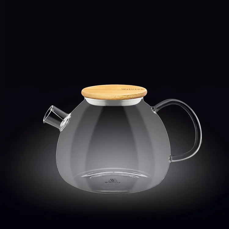 WILMAX Thermo Glass Заварочный чайник с деревянной крышкой пузатый 1000мл