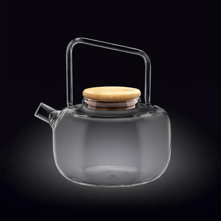 WILMAX Thermo Glass Заварочный чайник с деревянной крышкой ручка вверху 1000мл